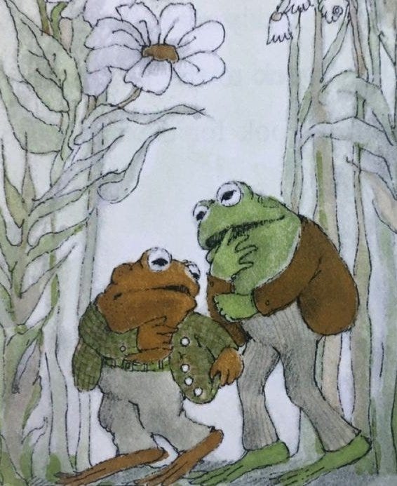 One of my favorite book series as a child was “Frog and Toad”. I was introduced to these whimsical characters back in 3rd grade. I had a slight speech impediment ( I couldn’t pronounce my “R”s) and so I went to a speech therapist at school 2-3 times per week with a buddy from class. I can’t remember the speech teacher’s name, but I do remember what we read the most- Frog and Toad Are Friends by Arnold Lobel.